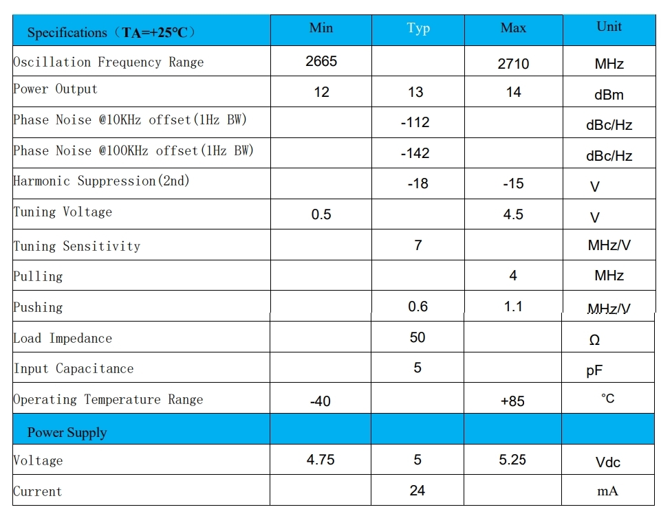 Tuning Voltage | 0.5V ~ 4.5V |